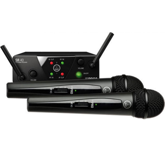 AKG SR 40 мини приемник. Три светодиода указывают вкл./выкл, принимаемого сигнала (RF OK), и аудио отсечения (AF CLIP). Volume регулятор устанавливает уровень на разъем 1/4". Блок питания (работает на любом напряжении переменного тока от 110, до 240 В переменного тока и включает в себя US/UK/EU адаптер