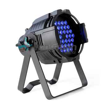 Светодиодный прожектор в алюминиевом корпусе. Имеет 36 ультраярких RGB 3-в-1 светодиодов по 3W каждый (красный, синий, зелёный). Световой поток: 4690 lm. Угол раскрытия луча 15\25\45 градусов (опционально). Управление: DMX – 6 каналов управления, master/slave, автоматический режим, музыкальный режим. Встроенный LED дисплей с 4 кнопками для навигации. Диммер 0-100%, строб, встроенные пресеты смены цвета. Время жизни светодиодов от 60 000 до 100 000 часов. Степень защиты- IP20. Энергопотребление 160W. Размер: 22*22*34 см. Вес НЕТТО: 8 кг.