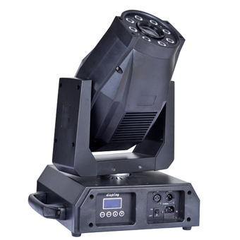Светодиодная "Вращающаяся Голова" 150W белый светодиод + блок светодиодов 8x9w tri-color LED для режима Wash. Обладает функциями Spot + Wash. Имеет 2 колеса Гобо ( 1 статические гобо и 1 вращающиеся гобо по 7 гобо + белый в каждом ) и 1 колесо цвета: 7 цветов + открытое. Вращающаяся 3-х фасетная призма. Линейный фокус, строб, линейный диммер, Pan:540° Tilt:270° 8/16Bit, Управление 34/31/16 каналов DMX-512. Энергопотребление: 300W. Размеры: L400*W280*H606.5mm. Вес: N.W:12.5Kg / G.W: 14 Kg