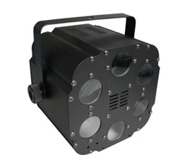 Автоматический световой прибор на основе LED технологий. Создаёт множество лучей меняющих цвет и кружащихся, с помощью специальных зеркал-отражателей, в такт музыке. Проекция лучей в виде эллипсов. Источник света – светодиод 15W 3-in-1 LED (красный:9W, зелёный:3W, синий:3W).