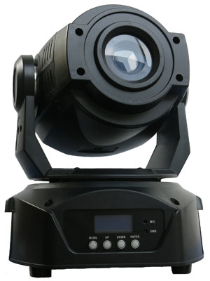 Вращающаяся голова (Moving head Spot) на светодиодах. Источник света COB LED 1 х 90 Вт. Угол раскрытия луча: 14°. Электронный диммер 0-100. Программируемый стробоскопический эффект с регулируемой скоростью 0-20Hz. Колесо цвета 1: 7 цветов с промежуточным положением + белый, колесо гобо 1: 8 фиксированных гобо + открытое положение, колесо гобо 2: 6 вращающихся гобо + открытое положение. 3-х гранная вращающаяся призма, моторизованный фокус, управление DMX512: 11/14/16 каналов. Цифровой ЖК-дисплей для установки адреса, PAN / TILT реверс, программы, обнуления. Разъём DMX 512: 3-контактный XLR. DMX управление с помощью стандартного DMX-контроллера. Углы поворота: PAN 540 °; Tilt 270 °. Музыкальный режим, режим Master-Slave, автоматические программы. Вентилятор: воздушное охлаждение. Энергопотребление 125W. Габариты: 240 x 240 x 370 mm, вес 6,5 кг.