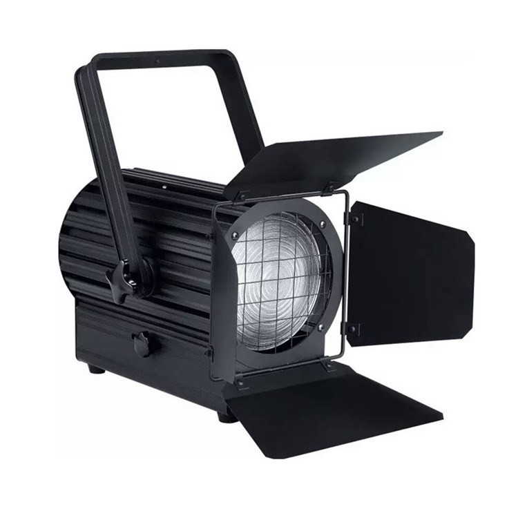 Прожектор c линзой Френеля с одним COB White Led светодиодом 200 Вт. Цветовая температура 3200 К. Регулировка луча от 15° до 60°. Диаметр линзы Ø 112мм. Максимальная потребляемая мощность 220Вт. DMX управление. Габаритные размеры 300x191x185мм. Кашетирующие шторки в комплекте.