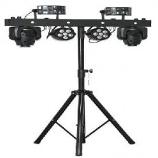 Светодиодный динамический световой прибор с двухцветным лазером красный: 650nm 100mW, зелёный: 532nm 30mW и множеством тонких лучей. Имеет режимы стробирования и изменения цвета RGBW. Источник света: 5 светодиодов по 3W производства компании Cree (красный,зелёный,синий,белый,розовый). Угол светового покрытия - 180 градусов. Режимы управления: звук/авто/ master-slave/DMX 512 – 6 каналов. Потребляемая мощность: 30Вт. Вентилятор охлаждения. Размеры:30х30х21см. Вес: 3 кг.