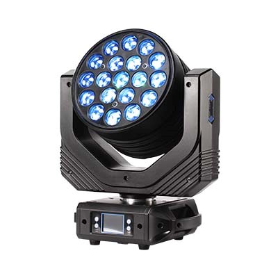 Светодиодная бесшумная вращающаяся голова с цветосмешением RGBW. Источник света: 19шт по 25W светодиоды TaiwanLightSource. Линейный тихий ZOOM 6°—60°. Длительный световой ресурс - более 30 000 часов и низкое энергопотребление. Плавное и аккуратное управление для движений PAN/TILT 540° pan и 270° tilt (16 bit). Система смешения цветов RGBW. LED диммер позволяет регулировать яркость от 0 до 100% (выбор в меню диммерных кривых). Эффекты: эффект радуги, эффект стробо 30 вспышек в секунду. Цветовая температура: 10000 k ~ 3200 k. Эффект «радуги». Управление DMX-512 – 17/33 каналов, master-slave, автоматический режим. Вся необходимая информация отображается на ЖК-дисплей. Тип охлаждения: настраиваемый в меню тихий интеллектуальный температурный вентилятор охлаждения светодиодной матрицы. Разъём для подключения питания: Powercon. Энергопотребление: 470W.