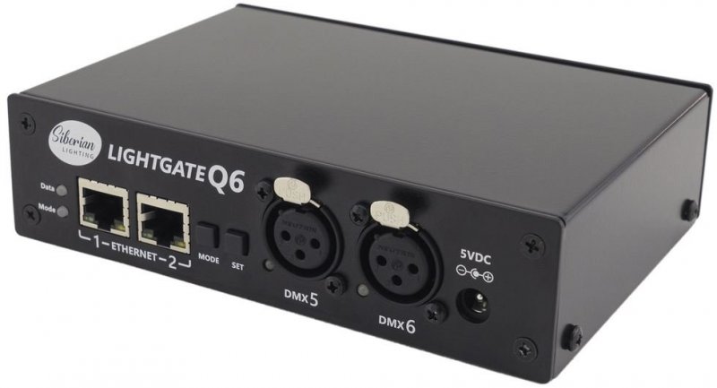 Контроллер LightGate Q6 предназначен для управления световыми DMX-приборами через локальную сеть Ethernet. Шесть двунаправленных DMX-портов. Поддерживает протокол ArtNet v4, DMX512, (RDM - в следующем обновлении прошивки, ориентировочно Ноябрь 2019).